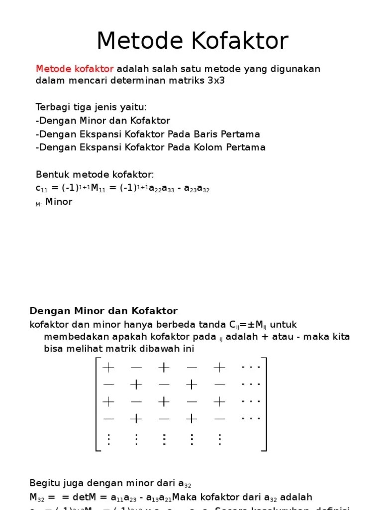 Materi Matriks Minor Dan Kofaktor / Determinan Lanjutan Ppt Download : (minor dan kofaktor matriks akan dijelaskan lebih lanjut pada materi selanjutnya).